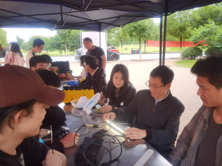 活动现场,党员教师和志愿者们支起帐篷,备好工具,拉起条幅,他们发挥专业特长,运用所学专业知识仔细查找小家电存在的故障并进行维修。
