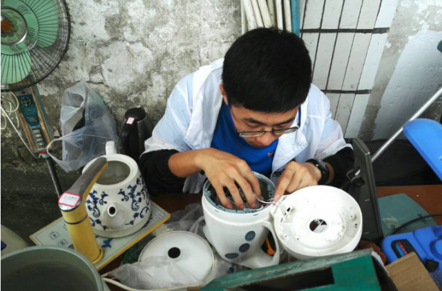 在接到市民们陆陆续续送来的家电后,同学们首先对送来的家电进行了编号,由专门的登记人员记录下电器的名称、损坏的地方、市民的名字及联系电话。然后,维修人员对电器进行检测维修。