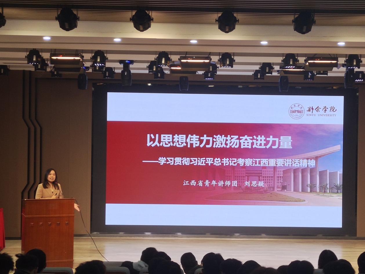 本次活动首先由青年讲师团成员刘思疑老师进行“以思想伟力激扬奋进力量,学习习近平总书记在江西考察时的重要讲话精神”主题宣讲,深刻感悟到习近平新时代中国特色社会主义思想的强大真理力量和实践伟力,聚焦“走在前、勇争先、善作为”的目标要求,全力打造“三大高地”、实施“五大战略”,牢记嘱托、砥砺奋进,奋力谱写中国式现代化江西篇章。接着师生代表从不同的角度来分享他们的学习心得感悟。