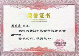 经院系申报、团委推荐、团市委审核,公司团委被评为2022年度“全市五四红旗团(工)委”,公司2020级学子周讯被评为2022年度“全市优秀共青团员”,公司团委负责人周庆庆老师被评为2022年度“全市优秀共青团干部”。