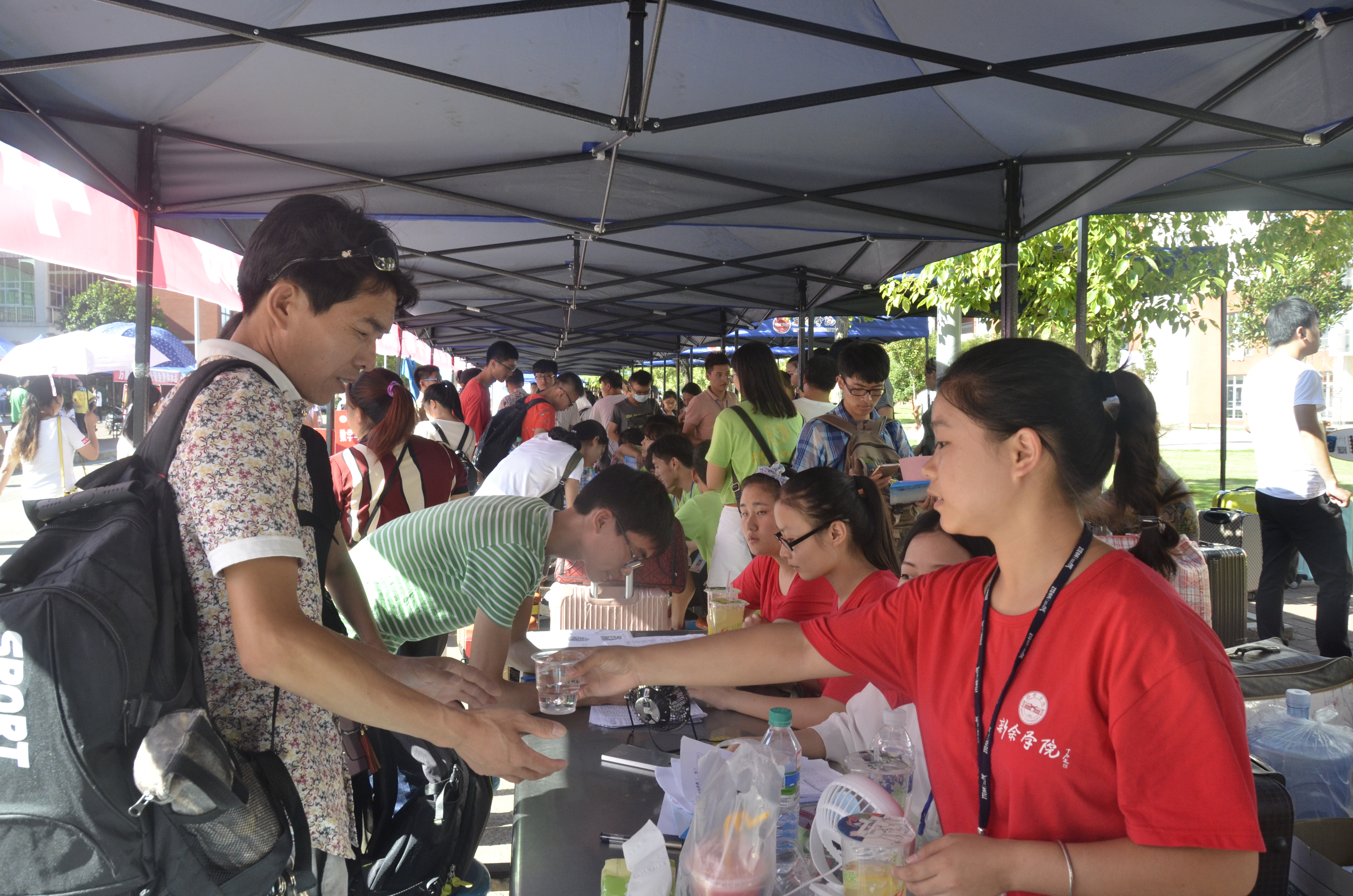 天气的炎热也抵不过学长学姐的热情,暖心的举动为新同学送去清凉。初来乍到的同学们感受到了老师及学长学姐的关怀,更感受到了来自中兴大家庭的爱。