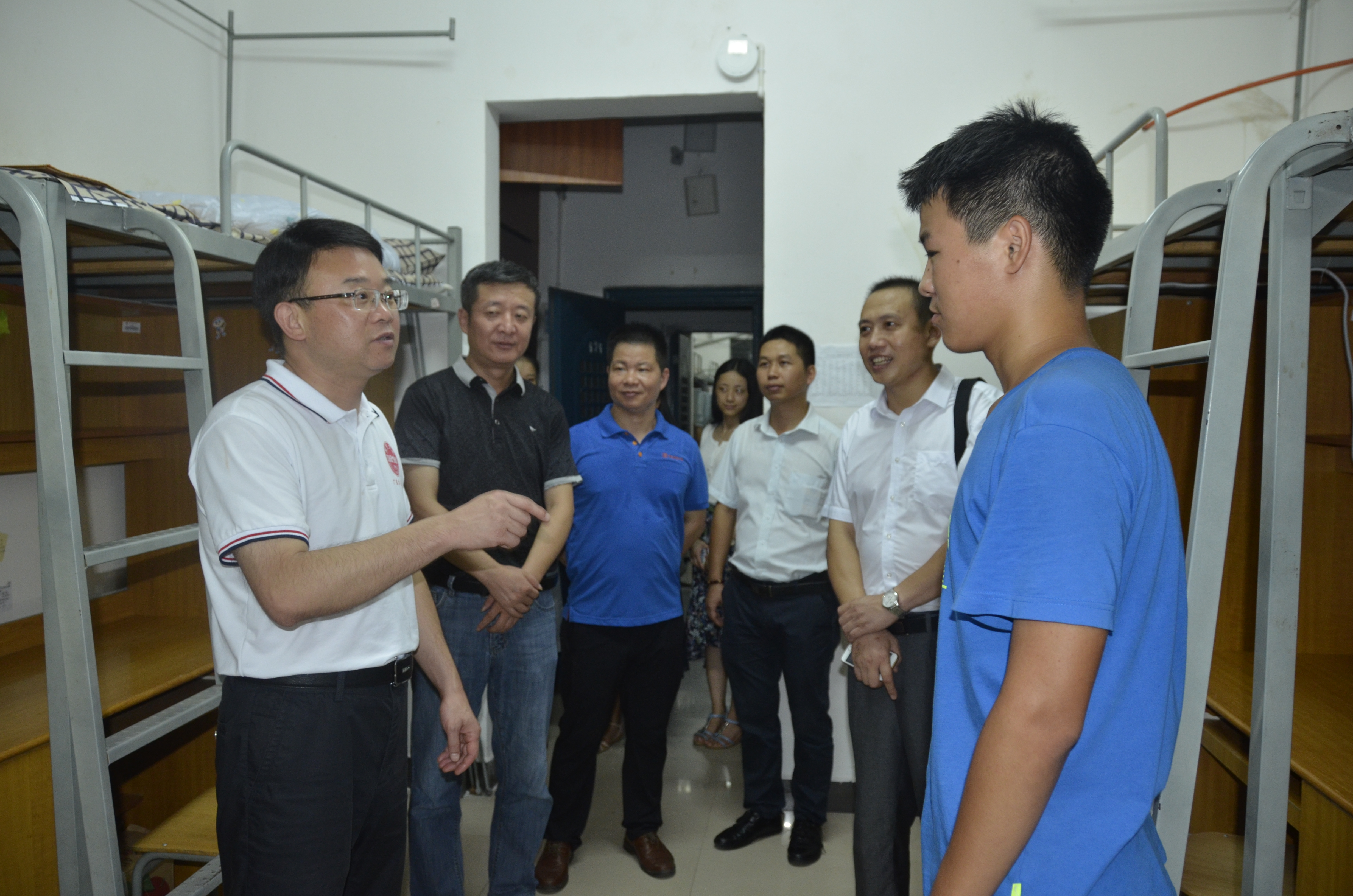 学长学姐们早早在摆点处集合完毕,他们在迎新的帐篷里为新同学及其家长准备好了饮用水和卫生纸巾。当一个个充满朝气的新生到来,学长学姐们热情的接待他们,及时的为他们送上饮用水和纸巾。学长学姐耐心的解答他们的疑惑,仔细讲解报到的注意事项,带领新同学前去报到。学长们更是一遍遍上下楼梯,帮这些新来的学弟学妹们搬拿行李。另外,公司多位领导老师也与同学们一同在摆点处与新生家长们进行沟通交流,方便他们更好的了解孩子所学的专业。28日晚,史可董事长及公司领导老师特走访了新生寝室,询问新生入住情况及生活问题。