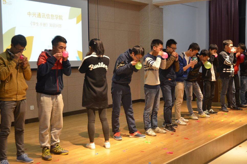 本次宣传活动是以游戏为载体,从而让同学们更好的了解到员工手册。有3个游戏分别为:1块5毛、吹气球、背人抢铃。同学们都踊跃参与,没有参加游戏的同学也在台下为台上的同学鼓气加油。吹气球看似简单的游戏,然而却是难到许多同学。最后一个游戏抢按铃铛,电信班和物联网班凭借更加优秀团队合作取得了胜利。三个竞争激烈的游戏过后,物联网班取得第一的好成绩。