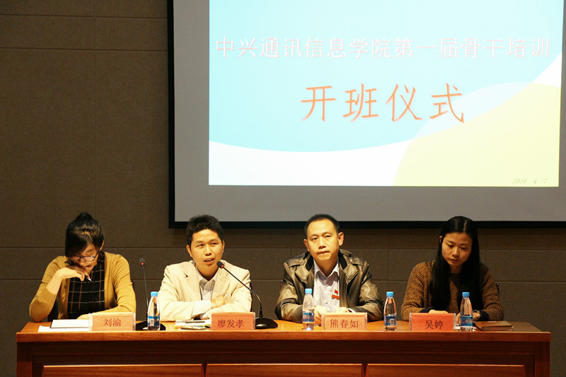 杰出的管理团队,象征着群体的光明未来。为使公司更快成为优秀的二级公司,公司于2016年4月7下午四点在产教融合中心报告厅,隆重举行第一届骨干培训开班仪式。熊春如经理、廖发孝经理、员工科吴婷老师、团委刘渝老师和袁爱珍、莫小灵老师以及员工会全体成员、各班班干,共计60余人参加开班仪式! 伴随着国歌的响起,此次仪式正式开始。随后,熊春如经理为我们致开班词,阐述了人际交往的重要性,教导我们成才先成人。廖发孝经理结合实际,引导我们如何去做一个优秀的leader;此外,吴婷老师肯定了大家做出的努力,同时也劝导我们要两头兼顾,不能顾此失彼,忘了作为员工的本职。最后刘渝老师向大家公布了本次培训的分班情况,宣布骨干培训班正式成立!同学们热情高涨,都表示非常期待接下来的培训活动。