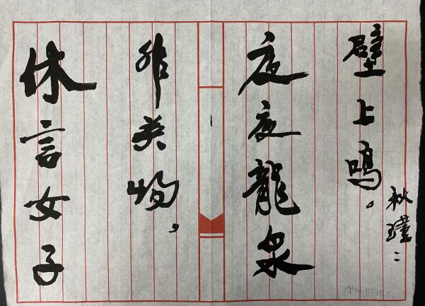 在本次活动中,同学们积极响应,踊跃参加,递交了一大批优秀书画作品。书画文化是我国的传统文化,蕴含了我国特有的民族精神。通过本次活动,让书画走进了我们的生活,让师生都能感受到书画文化的魅力,推动了文化校园的建设,展示了公司学子的风采!以下为部分优秀征文作品展示: